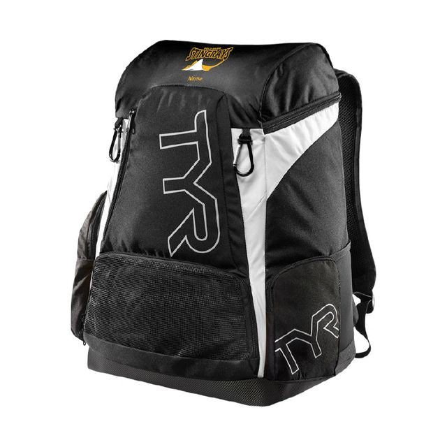The TYR Alliance 45L Backpack is always prepared for athletes on the move. This updated version of a classic offers innovative features tailored to active lifestyles. Its advanced design optimizes storage space while minimizing bulk. The backpack also boasts contour-shaped padding for superior ergonomics and lumbar support, along with front and side pockets, expandable mesh compartments for organizing wet and dry items, spring hooks for wet suits, a mesh water bottle pocket, adjustable straps, and a protected storage area for larger electronics.
