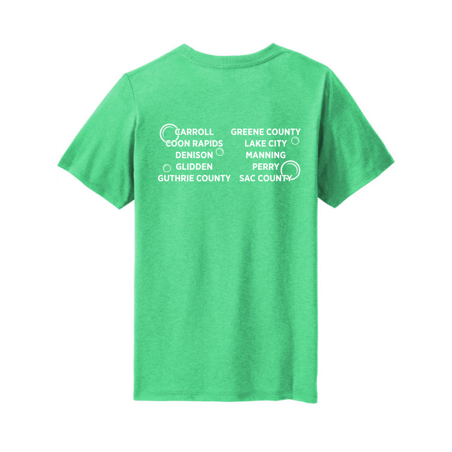 Iowa West Swimming Conference 2024 * District ® YOUTH Perfect Tri ® Tee (green frost) includes the front and back logo