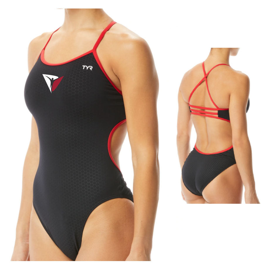 Stay ahead of the competition in the TYR Women's Hexa Trinityfit Swimsuit. Constructed with Durafast Elite™, it features a medium neckline, flexible X-back and high cut leg. Fully lined with UPF 50+ sun protection and anti-microbial liner, it boasts up to 300+ hours of pool performance. Look and feel your best with TYR.
