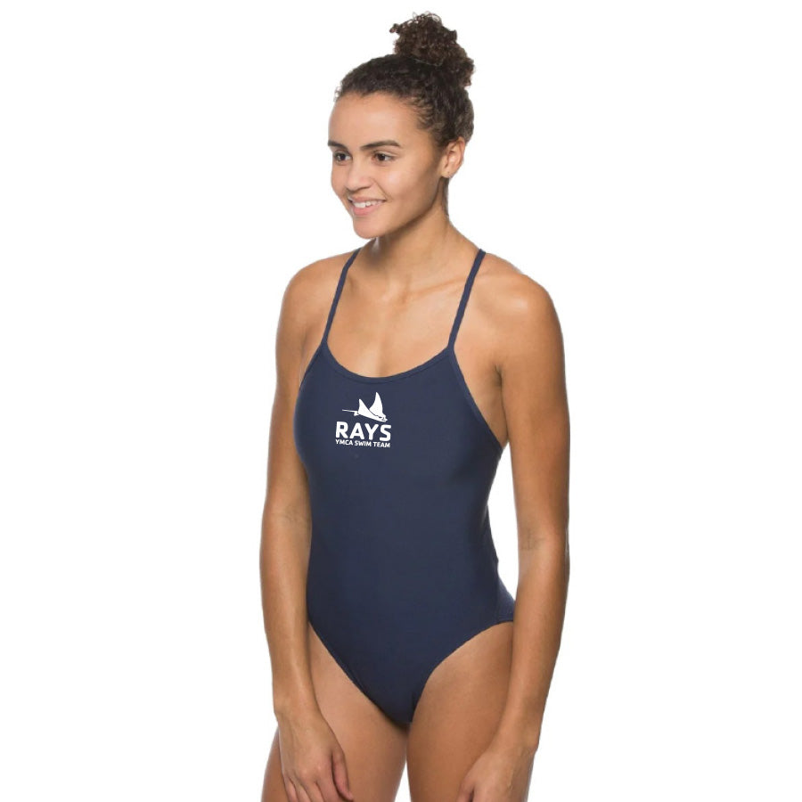 The jolyn perry solid onesie is the perfect suit for someone who wants a little more coverage. Featuring two over the shoulder straps that criss cross across the back, fixed back straps, cut out detail along the ribcage, and classic bottom coverage this is the ultimate training suit. Made with long lasting chlorine proof material, this suit will last swim after swim.