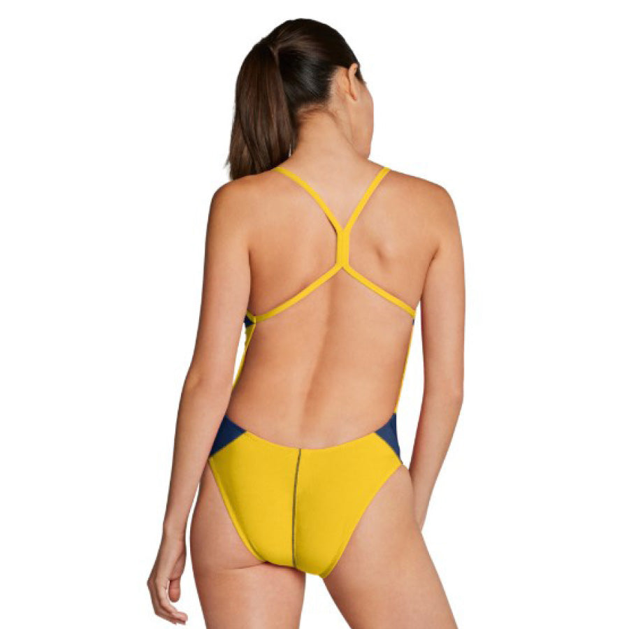 The Speedo edge splice one back is built to last swim after swim. Made with the long lasting, chlorine resistant, Endurance+ fabric this suit is durable and comfortable. The one back style has thin straps and an open back, designed for a maximum range of motion for every stroke, making this suit the perfect option for racing or for training.