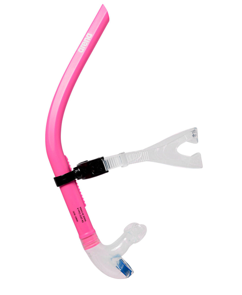 Improve your technique with the Arena Swim Snorkel III by strengthening and enhancing your breathing workouts. The new headband strap makes it even easier to wear and adjust to a fixed position. The one-way purge valve eliminates water inhalation during flip turn. The headbance strap and mouthpiece are made from 100% PVC free liquid silicone for ultimate comfort. Center constructed uni-directional headband provides increased stability and makes it easy to breathe and rotate. The quick-release clip makes for quick adjustments of strap length for custom sizing.
